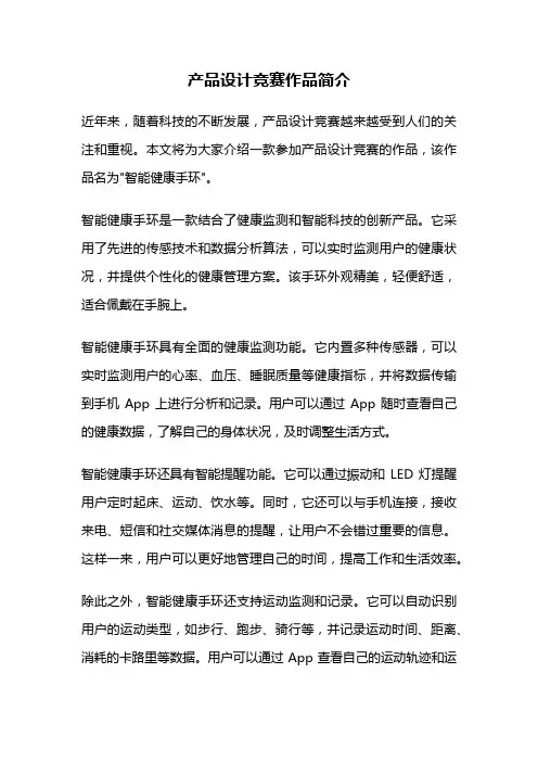 产品设计竞赛作品简介近年来,随着科技的不断发展,产品设计竞赛越来越受到人们的关注和重视。