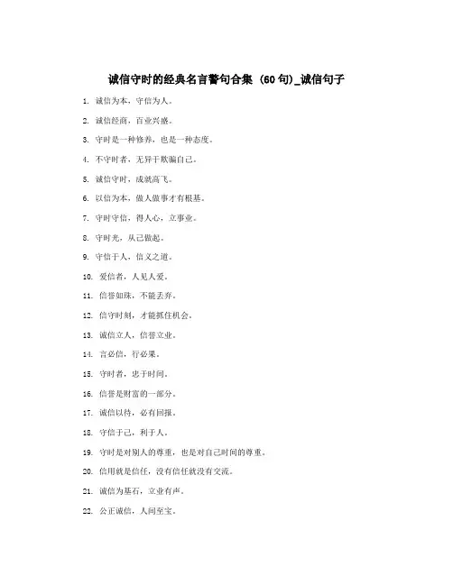 最新诚信的名言警句大全集 (通用60句)1. 诚信是一张通往成功的底牌。
