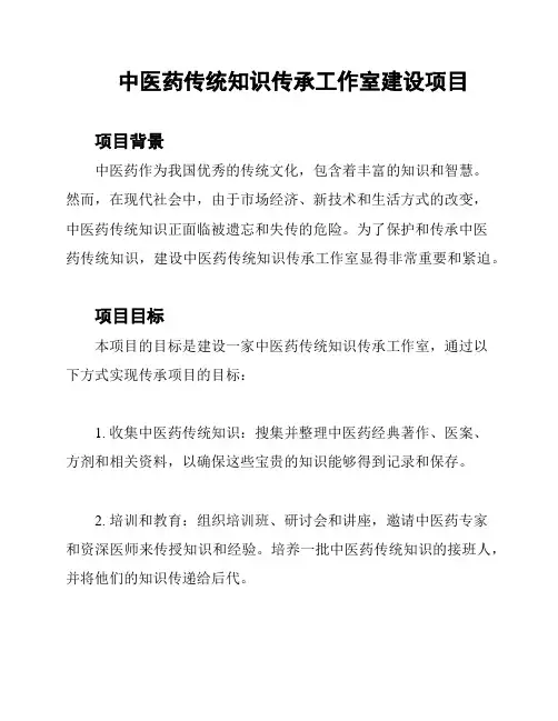 中医药传统知识传承工作室建设项目项目背景中医药作为我国优秀的传统文化,包含着丰富的知识和智慧。