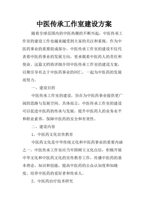 一、建设目的中医传承工作室的建设,旨在为中医药事业提供更广阔的思路与发展空间。