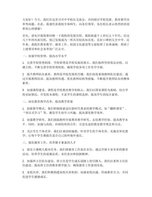 大家好!今天,我们在这里召开中学校长交流会议,共同探讨教育改革与发展的大计。