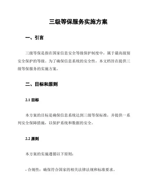 为了确保信息系统的安全性,本文档旨在提供三级等保服务的实施方案。