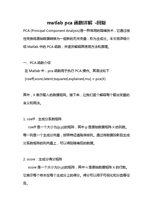 二、Matlab中的主成分分析函数在Matlab中,通过调用pca函数可以进行主成分分析。