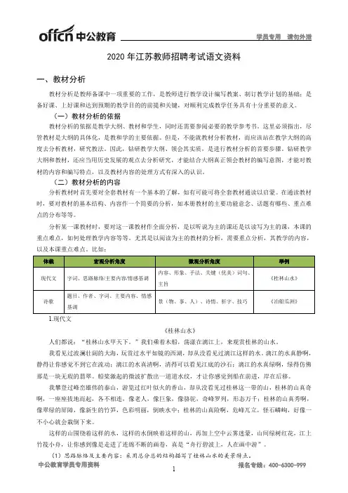 2020 特岗教师招考《小学语文》试题及答案解析( 满分: 100 分)第一部分教育理论与实践一、单项选择题 ( 每小题 1 分,共 3 分)1.教完《竞选州长》,教师设计这样的结束语:“马克?吐温实在算得上是一位幽默大师,他的小说既深刻又有趣?他写的两本反映儿童生活的小说《汤姆?索亚历险记》和《哈克贝利 . 费恩历险记》是令人着迷的书,同学们能够抽时间读一读。