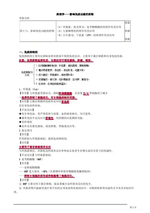 药物对免疫系统的药理学作用药物对免疫系统的药理学作用是指药物通过与免疫系统的相互作用,调节免疫系统的功能和免疫反应。