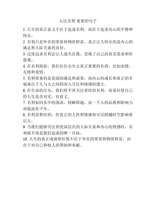 一、不为名所累在这个多彩的世界,追名者不少,但是,现实生活告诉我们,人一旦太注重了名利,处处追名逐利,甚至为了名利而不择手段,失德断情,最终因“德不配位”,做人不成功而翻船。