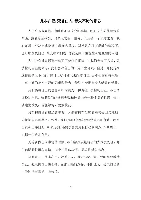 是非在己,毁誉由人,得失不论的意思何为“是非在己,毁誉由人,得失不论”?翻看历史的扉页,我们总能感受到它的存在。