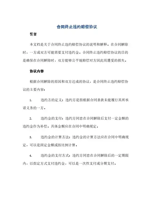 提前解除服务合同违约赔偿标准全文共四篇示例,供读者参考第一篇示例:提前解除服务合同违约赔偿标准一直是社会和企业经营者关注的热点问题。