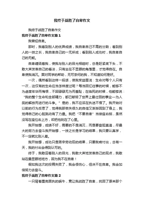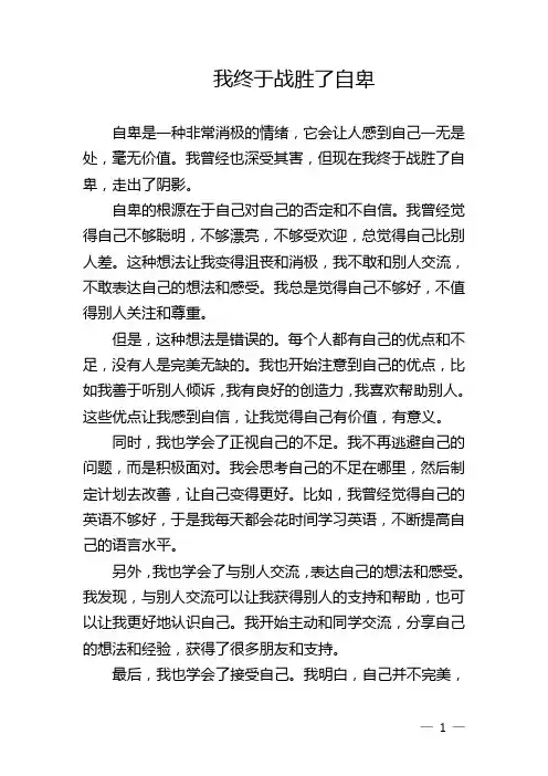 我终于战胜了自卑作文我终于战胜了自卑作文我终于战胜了自卑作文1在我小的时候,有一个毛病。