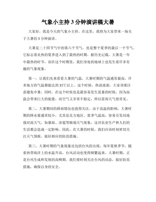 那么现在就来看看我们给大家准备的精彩节目吧主持词天气预报科普类:大家好!欢迎收看《宝宝播天气》节目,我是小主持人斗斗。