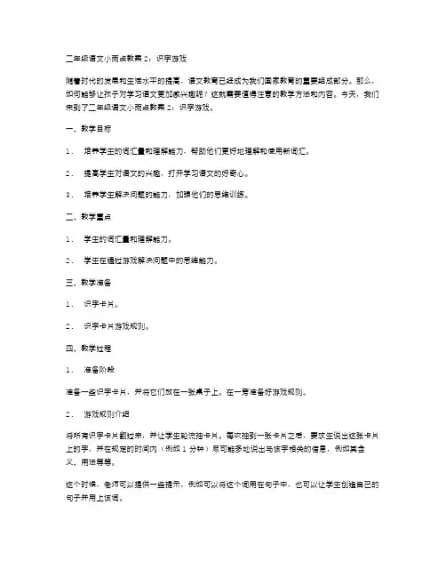 标题:让孩子爱上学汉字——精编语文教案二年级互动趣味学汉字引言:汉字作为中华文化的瑰宝之一,是中华民族的骄傲。