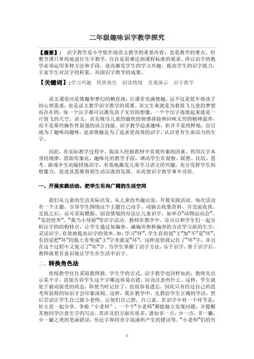 小学语文《趣味识字》教学设计小学语文《趣味识字》教学设计作为一位杰出的教职工,常常需要准备教学设计,教学设计是对学业业绩问题的解决措施进行策划的过程。