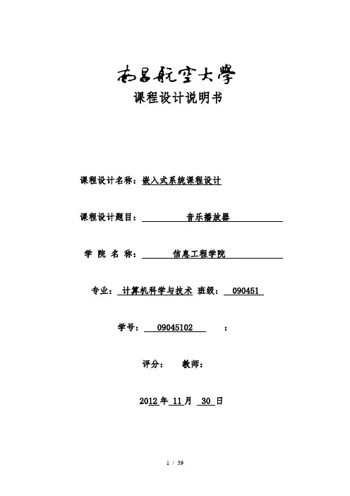一、需求分析在设计嵌入式音乐播放器之前,需要先进行需求分析,明确其设计目标和功能要求。