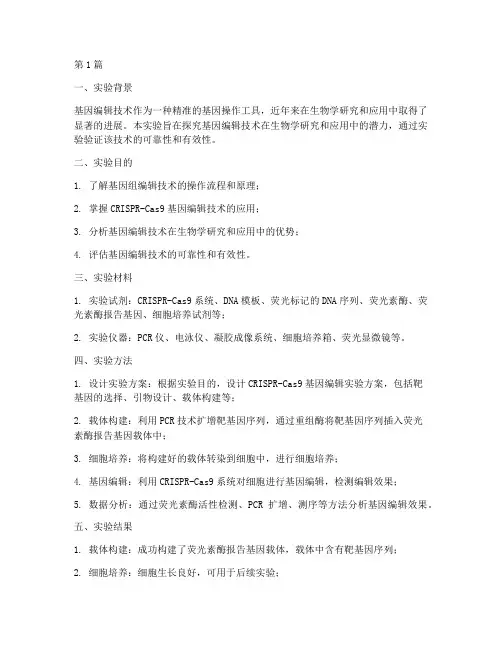 第1篇实验名称:人类基因组DNA提取与检测实验日期:2023年X月X日实验目的:1. 熟悉并掌握人类基因组DNA的提取方法。