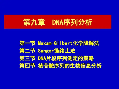 第四节DNA序列测定目前应用的两种快速序列测定技术是Sanger等(1977)提出的酶法(双脱氧链终止法)和Maxam(1977)提出的化学降解法。