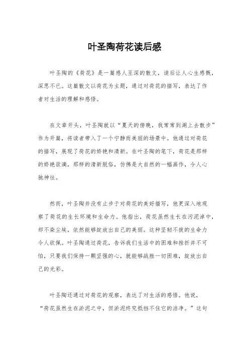 叶圣陶还通过对荷花的观察,表达了对生活的感悟。
