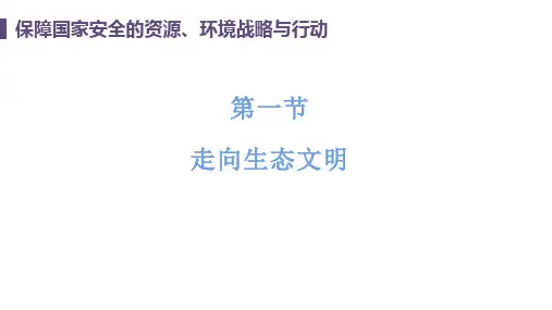 6.(原创)四川省天然林资源保护工程建设的核心目标是( )A.提高天然林存活率B.推进生态文明建设C.改善林区居民生活D.提升林地的生产力7.(原创)下列行为符合可持续发展思想的是(深度解析)A.三江平原沼泽地大量开垦为耕地B.南方低山丘陵区扩大梯田面积C.呼伦贝尔草原不断扩大养羊规模D.汉江上游山区封山育林题组二生态文明下的资源、环境与国家安全近年来“绿色GDP”日益成为专家和政府决策层关注的一个话题。