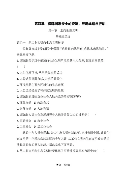 第四章保障国家安全的资源、环境战略与行动第一节走向生态文明基础过关练题组一从工业文明向生态文明转变经典黄梅戏《天仙配》中唱到“你耕田来我织布,你挑水来我浇园。
