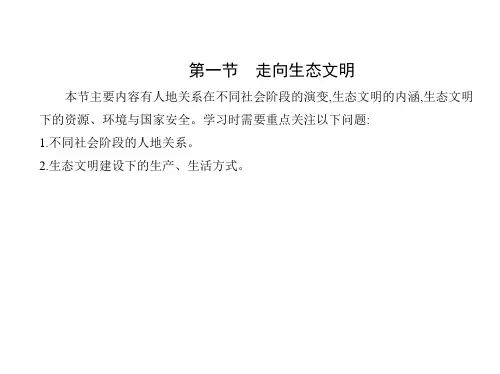 1.(原创)关于戏中描述的社会发展阶段及其人地关系,叙述正确的是( )A.人们依赖环境,从事采集渔猎活动B.人类试图征服自然,人地矛盾激化C.环境问题主要为区域性的生态破坏D.人类已经提出了可持续发展的思想2.(原创)能反映农业社会人地关系的是(深度解析)A.征服自然B.改造自然C.崇拜自然D.人地和谐3.(原创)人类社会发展历程中人地矛盾最尖锐的时期是( )A.原始社会B.农业社会C.工业社会D.后工业社会党的十九大报告提出,加快生态文明体制改革,建设美丽中国。