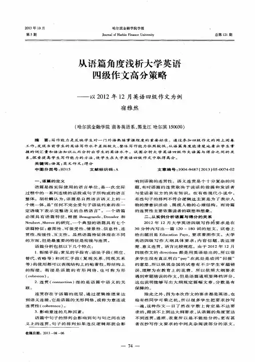 大学英语四级作文高分策略大学英语四级考试是大部分大学生必须面对的一项考试,它是考察学生英语综合能力的重要指标。