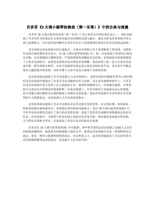 贝多芬《D大调小提琴协奏曲(第一乐章)》中的古典与浪漫贝多芬《D大调小提琴协奏曲(第一乐章)》是贝多芬创作的一部重要作品,它融合了古典与浪漫两种音乐风格,体现了贝多芬的音乐创作风格和思想情感。