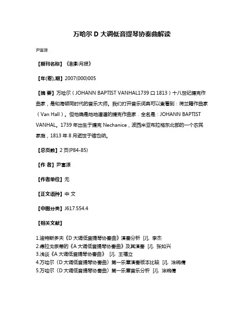 5.万哈尔〈D大调低音提琴协奏曲〉第一乐章音乐分析 [J], 涂琬倩