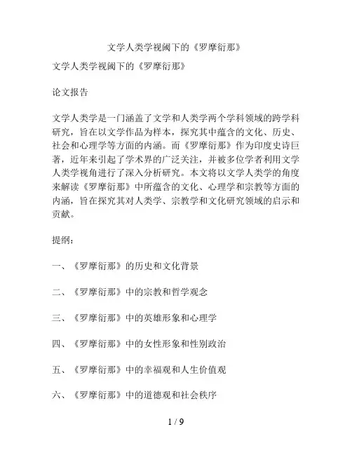 文学人类学视阈下的《罗摩衍那》文学人类学视阈下的《罗摩衍那》论文报告文学人类学是一门涵盖了文学和人类学两个学科领域的跨学科研究,旨在以文学作品为样本,探究其中蕴含的文化、历史、社会和心理学等方面的内涵。