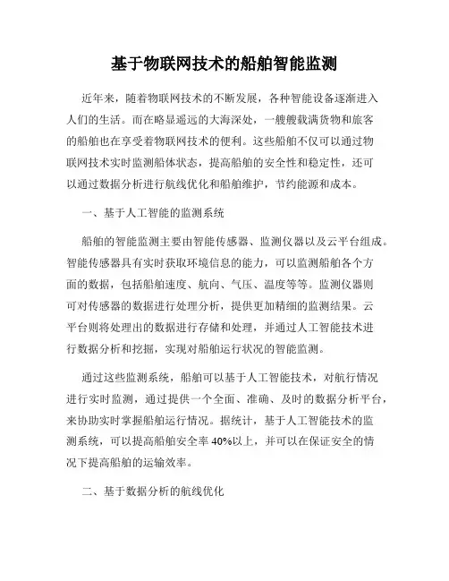 基于物联网技术的船舶智能监测近年来,随着物联网技术的不断发展,各种智能设备逐渐进入人们的生活。