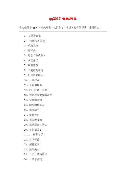 qq2017唯美网名本文是关于qq2017唯美网名,仅供参考,希望对您有所帮助,感谢阅读。