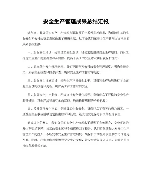 安全生产管理工作总结报告安全生产是保障企业、员工和社会公众的基本权益,也是企业可持续发展的重要保障。