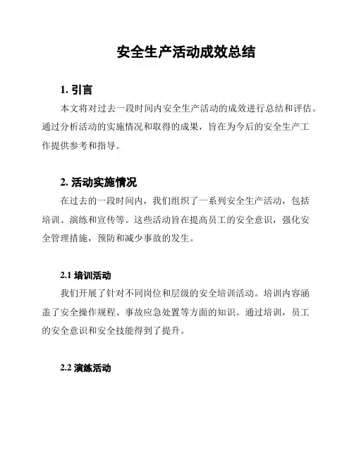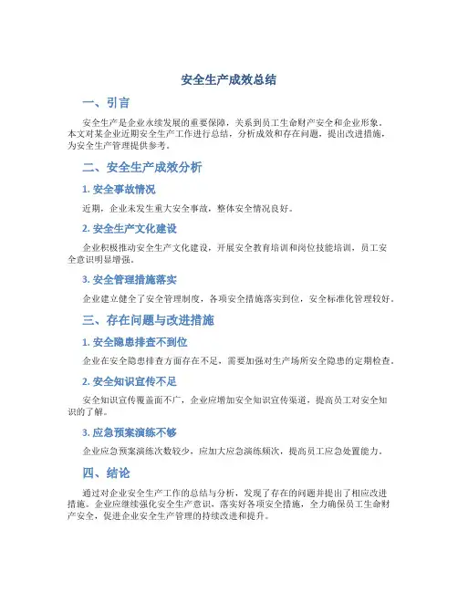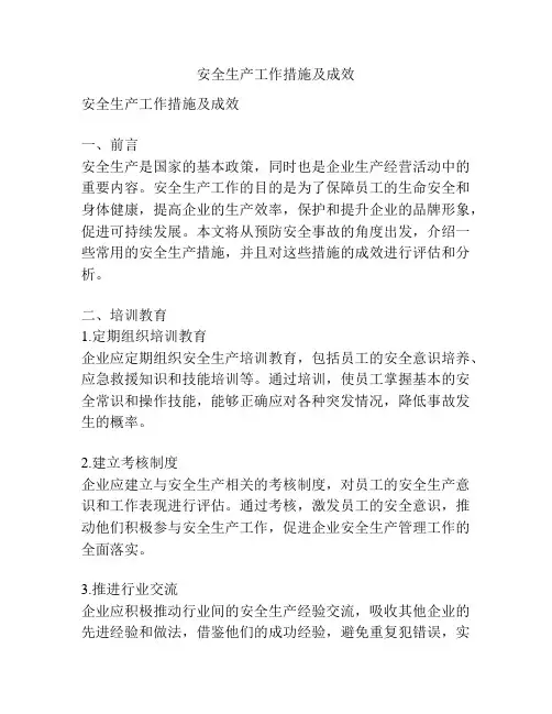 安全生产工作措施及成效安全生产工作措施及成效一、前言安全生产是国家的基本政策,同时也是企业生产经营活动中的重要内容。