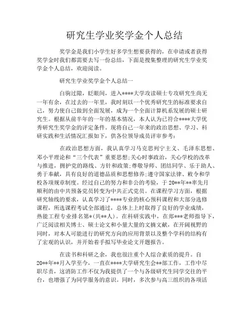 研究生学业奖学金个人总结_研究生学术工作总结