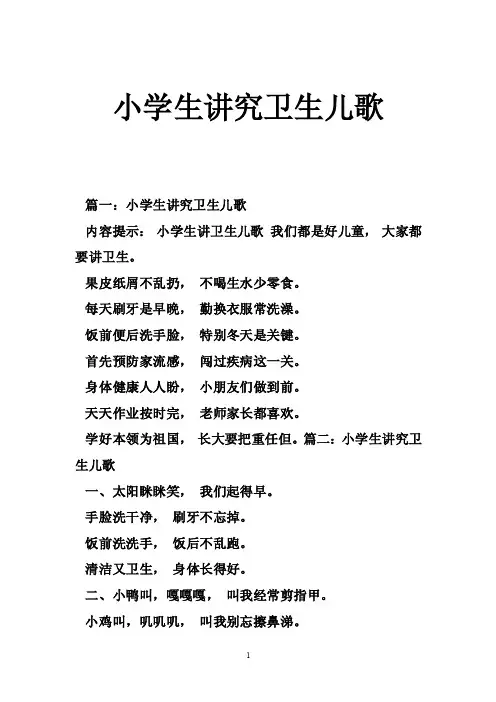 二、个人卫生篇(一)洗手歌小小手儿洗一洗,细菌病毒全赶走。