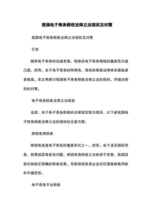 我国电子商务税收征管的立法问题建议随着我国电子商务的蓬勃发展,电子商务税收征管的立法问题也逐渐凸显出来。