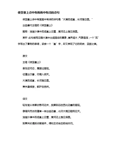 诗中有画画中有诗一、诗中有画诗中有画,主要是指以诗为主体,吸收画的某些因素,溶入诗境,从而体现出一般诗作所难以达到的美感。