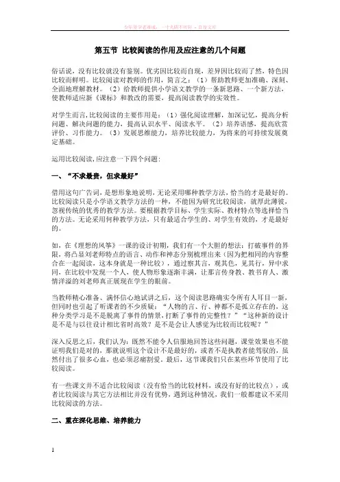 第五节比较阅读的作用及应注意的几个问题