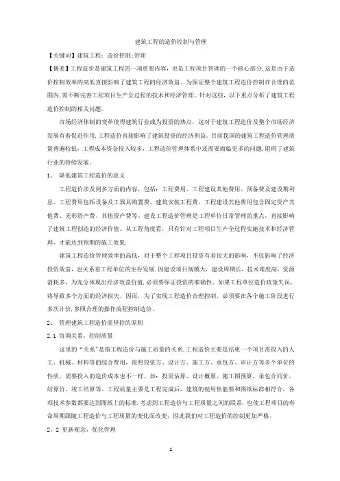 二、工程造价管理的重要性在建筑工程项目中,工程造价管理是非常重要的环节。
