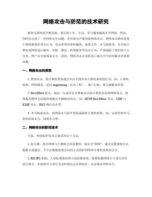 网络攻击与防范的技术研究随着互联网的不断发展,我们的工作、生活、学习越来越离不开网络。