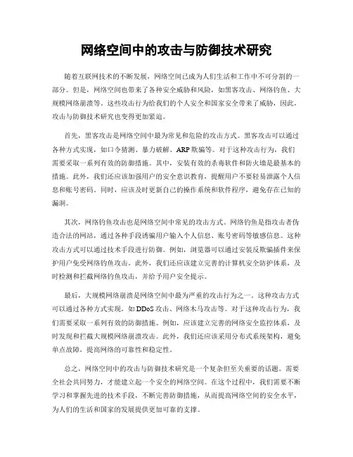 网络空间中的攻击与防御技术研究随着互联网技术的不断发展,网络空间已成为人们生活和工作中不可分割的一部分。