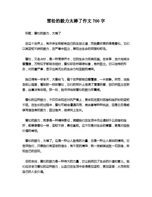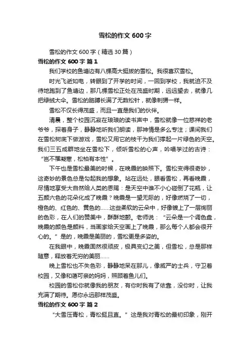写雪松的作文500字写雪松的作文500字(精选34篇)在日常学习、工作和生活中,大家都经常接触到作文吧,写作文是培养人们的观察力、联想力、想象力、思考力和记忆力的重要手段。