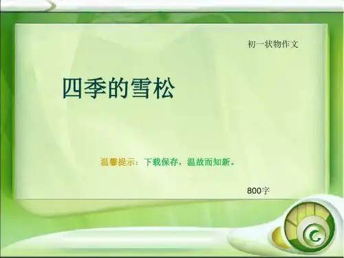 雪松的作文400字雪松的作文400字(通用38篇)在平凡的学习、工作、生活中,大家总少不了接触作文吧,作文是人们把记忆中所存储的有关知识、经验和思想用书面形式表达出来的记叙方式。