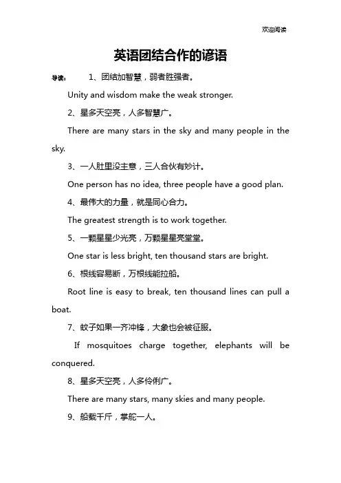 英语团结合作的谚语导读:1、团结加智慧,弱者胜强者。