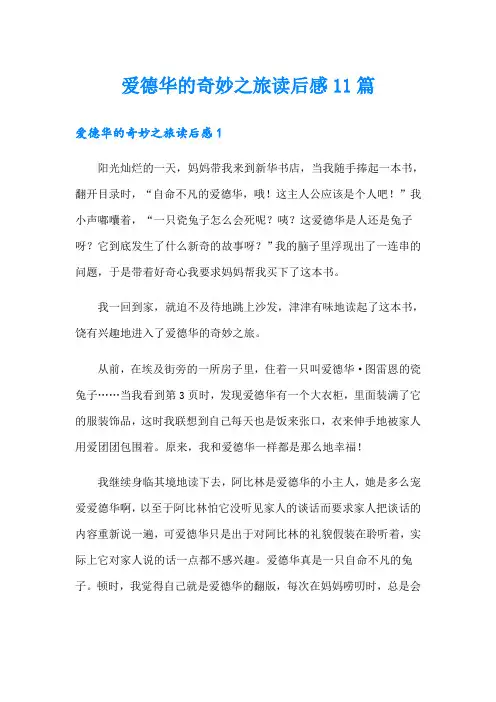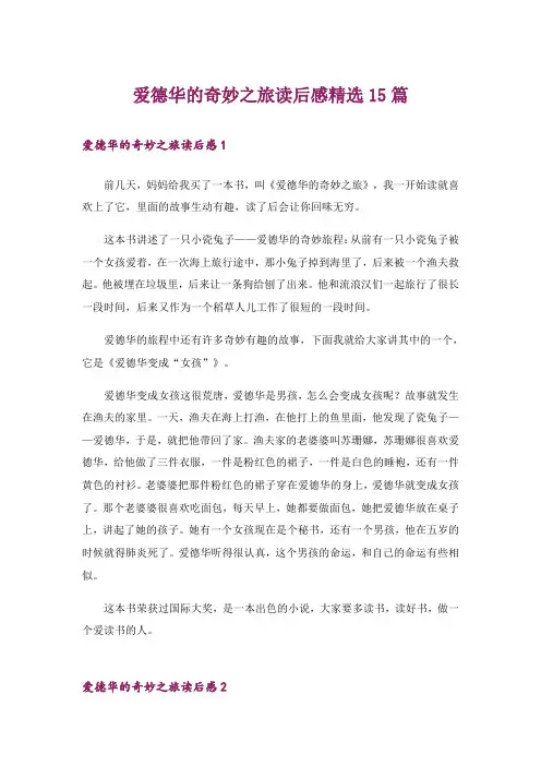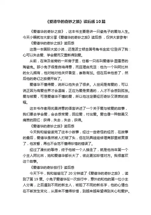 《爱德华的奇妙之旅》读后感(精选7篇)《爱德华的奇妙之旅》篇1《爱德华的奇妙之旅》这本名著的作者是美国的作家——凯特·迪米洛。