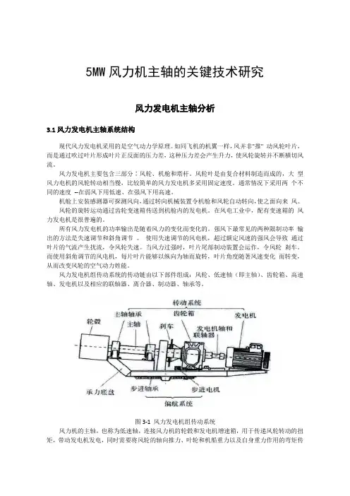 5MW风力机主轴的关键技术研究风力发电机主轴分析3.1风力发电机主轴系统结构现代风力发电机采用的是空气动力学原理。