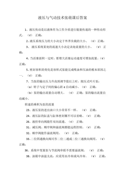 液压与气动技术张萌课后答案1、液压传动是以液体作为工作介质进行能量传递的一种传动形式。