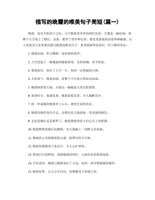 描写漫天晚霞的句子唯美(精选100句)漫天晚霞,如诗如画,如梦如幻。