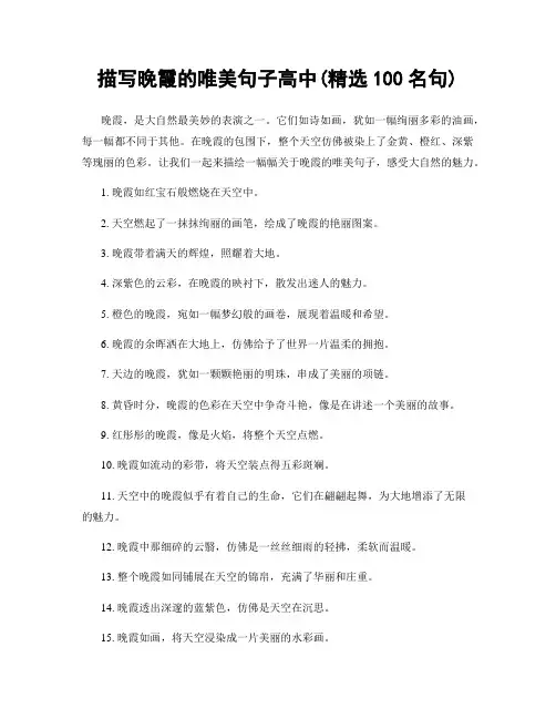 描写晚霞的唯美句子高中(精选100名句)晚霞,是大自然最美妙的表演之一。