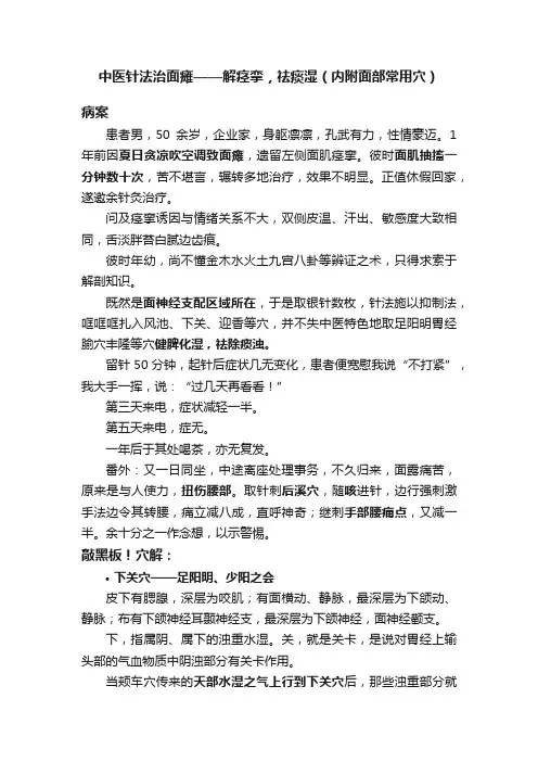 中医针法治面瘫——解痉挛,祛痰湿(内附面部常用穴)病案患者男,50余岁,企业家,身躯凛凛,孔武有力,性情豪迈。