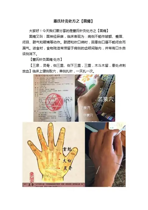 治则:疏风清热、舒筋祛邪取穴:先取穴侧健的侧三里侧下三里,配合动气针法;再患侧针泻合谷和面部有关腧穴。