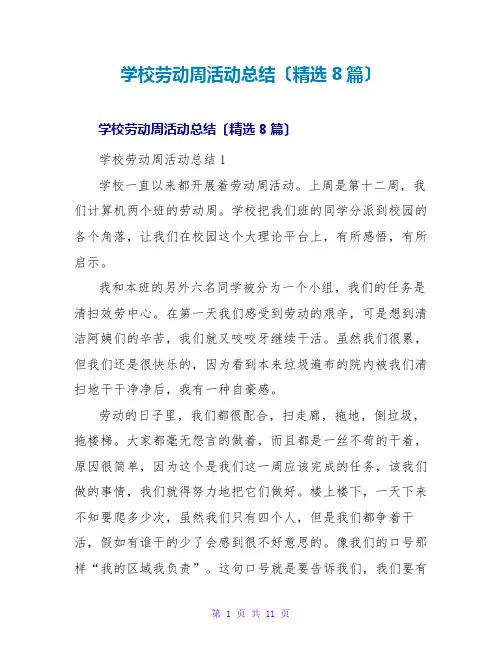 学校劳动周活动总结〔精选8篇〕学校劳动周活动总结〔精选8篇〕学校劳动周活动总结1学校一直以来都开展着劳动周活动。